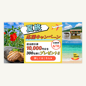 • 夏に家族旅行を考えている20代〜40代のファミリー層をターゲットに、元気で目を引くデザインでキャンペーンを訴求することを目的としています。配色には、楽しい夏のイメージに合った黄色と青、オレンジを使用し、明るく親しみやすい印象が出せるようデザインしました。